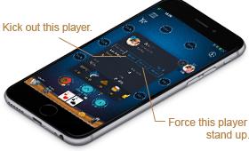 Kick out this player--Click ‘kick out’ can kick out this player after this hand. Once been kicked